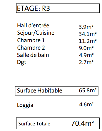 Cet appartement neuf de 65,8 m2 est situé au 3ème étage, il est exposé Ouest ce qui permet de bénéficier d'un ensoleillement optimal.
