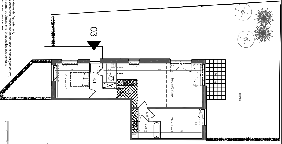 Cet appartement neuf T3 de 77,25 m2 est situé au rez-de-chaussée, et possède une double orientation (Est et Ouest) ce qui permet d'avoir le soleil tout au long de la journée.