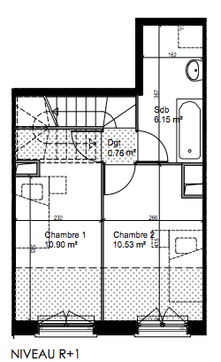 Il comprend au R+1: