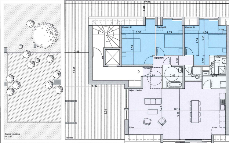 Entrée sécurisée par vidéophone et badge magnétique, portail télécommandé, double vitrage PVC, chaudière individuelle.